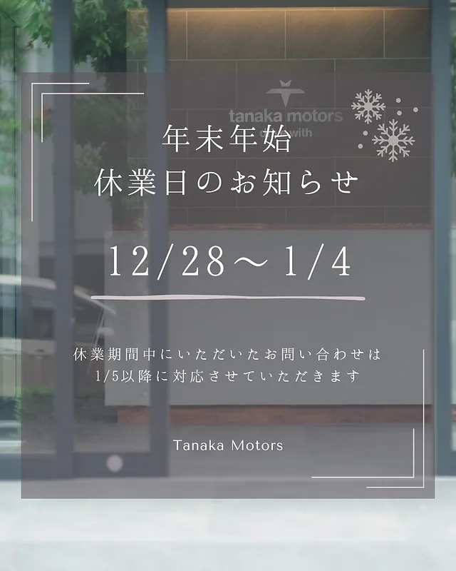 年末年始の休業とさせて頂きます。